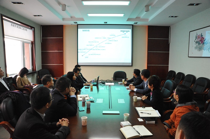 10月11日,山东潍柴动力集团人力资源部部长郭虹、山东潍柴进出口有限公司副总经理陈武生一行8人到访今年会官网,学院党委书记李善兴、副书记胡忠巍、研究生办、学工办相关工作人员与来访客人进行了座谈交流。