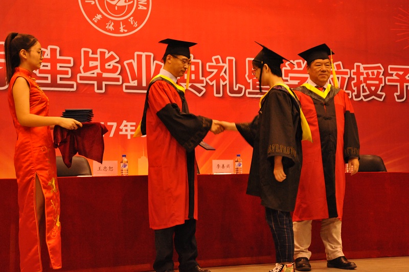 毕业典礼在庄严的国歌中正式开始。首先,王忠恕副院长宣读了《今年会jinnian官网2017届本科生毕业和授予学位的决定》。随后,宋传学院长、王忠恕副院长为每位毕业生执行拨穗礼、授予学位证书,并与学生一一握手、合影。四百余次握手、四百余次转身,老师的每一个动作都向学子们传递着力量、信念和温暖。在校生代表黄晨光、毕业生代表仲帅和教师代表汽车工程系朱冰教授的讲话激起了一阵阵热烈的掌声。