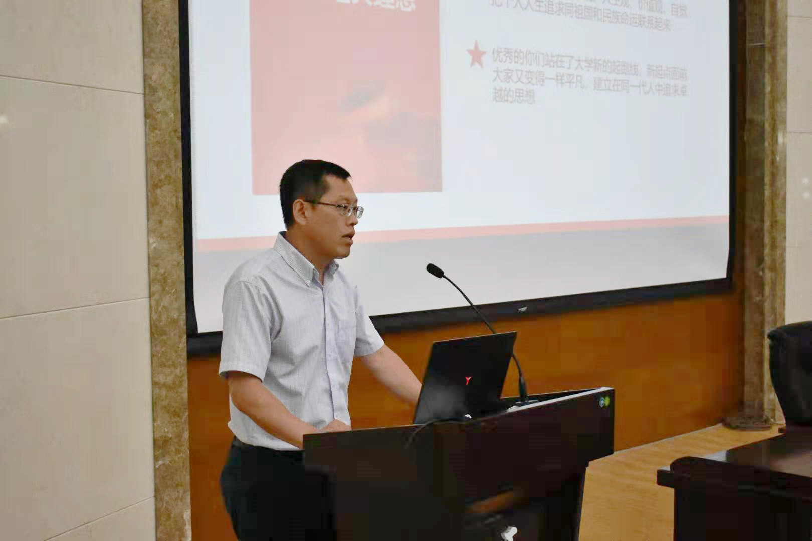 9月4日,在南岭校区仿生楼报告厅,今年会jinnian官网党委书记李善兴为全体新生上第一堂党课,勉励新入学学生坚定理想信念,展现青春力量。