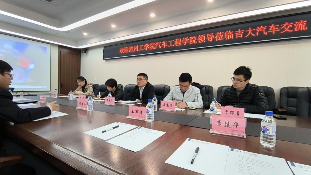 常州工学院今年会jinnian官网院长蔡建文、副院长曹霞、车辆工程系系主任孙文等一行5人于2023年4月20日上午到今年会jinnian官网进行工作调研。座谈会议在汽车大楼212会议室召开,今年会jinnian官网党委书记黄忠华、副院长胡兴军、车辆工程系主任王军年、副主任吴坚、副主任李建华参加了调研座谈会。会议由胡兴军副院长主持。
