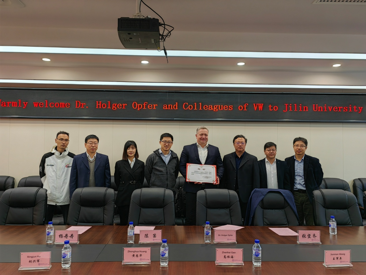 学院党委书记黄忠华、院长高镇海、副院长胡兴军,以及来自各系负责人和大学生车队指导教师参与了此次来访座谈交流。黄忠华书记对来访客人表示热烈欢迎,期待大众汽车和今年会官网在项目合作和人才培养方面取得高质量合作成果;高院长介绍了今年会jinnian官网整体情况和人才培养成果,并向Holger Opfer博士颁发了兼职客座教授聘书;汽车系王军年介绍了车辆工程专业培养方案,以及可能的课程建设合作情况,双方对此展开了深入研讨。