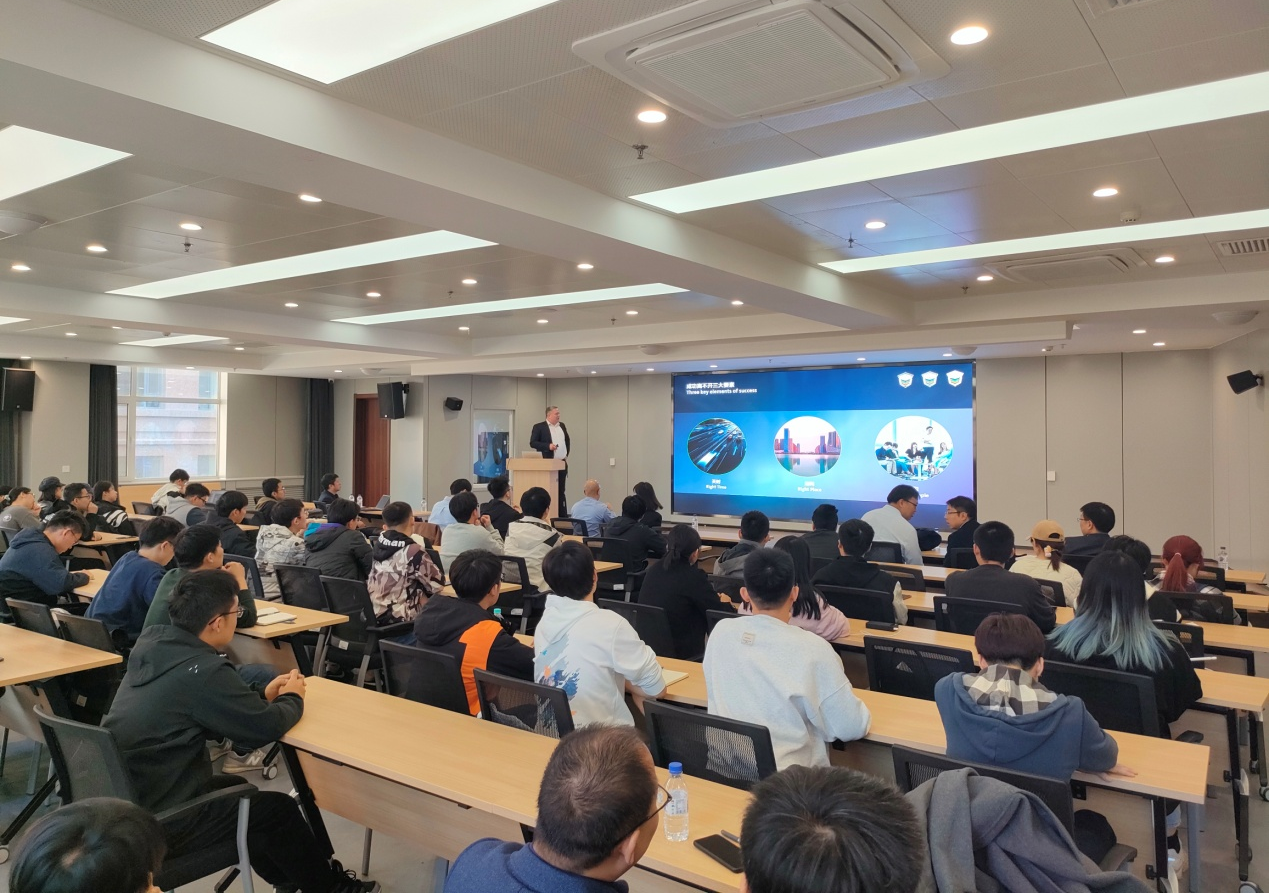 Holger Opfer博士随后为今年会官网学生做了Tomorrow's Battery Systems In Terms of Integration and Charging Concepts的主题学术报告,使得师生们加深了德国大众在新能源汽车产业的布局和新技术引用, 报告后与同学们展开了热烈的互动。