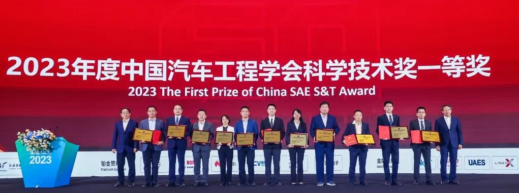 图3 朱冰教授(左三)被授予中国汽车工程学会科学技术奖一等奖