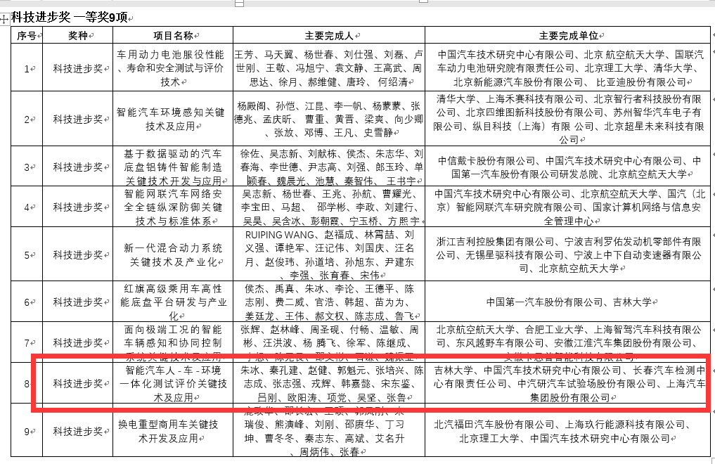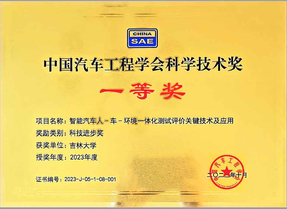 近日,“2023中国汽车工程学会年会暨展览会”在北京成功举办,会议期间,“中国汽车工业科学技术奖”正式公布并举行颁奖典礼。以今年会jinnian官网朱冰教授团队牵头完成的研究成果《智能汽车人-车-环境一体化测试评价关键技术及应用》,荣获“2023年度中国汽车工程学会科技进步奖一等奖”。