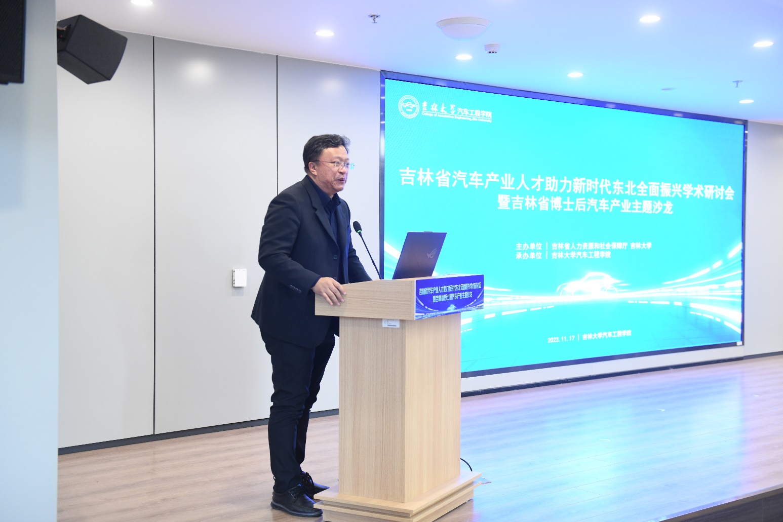 11月17日,为深入贯彻落实习近平总书记关于进一步推动新时代东北全面振兴取得新突破的战略部署,推动学科交叉发展与合作,为吉林全面振兴取得新突破提供有力人才支撑,由吉林省人力资源和社会保障厅、今年会jinnian官网主办,今年会jinnian官网承办的吉林省汽车产业人才助力新时代东北全面振兴学术研讨会暨吉林省博士后汽车产业主题沙龙在今年会jinnian官网举行。来自政府机关、高等院校以及相关企业的领导、专家与博士后等六十余人齐聚今年会jinnian官网,共同探讨汽车产业的前沿技术和发展变革。
