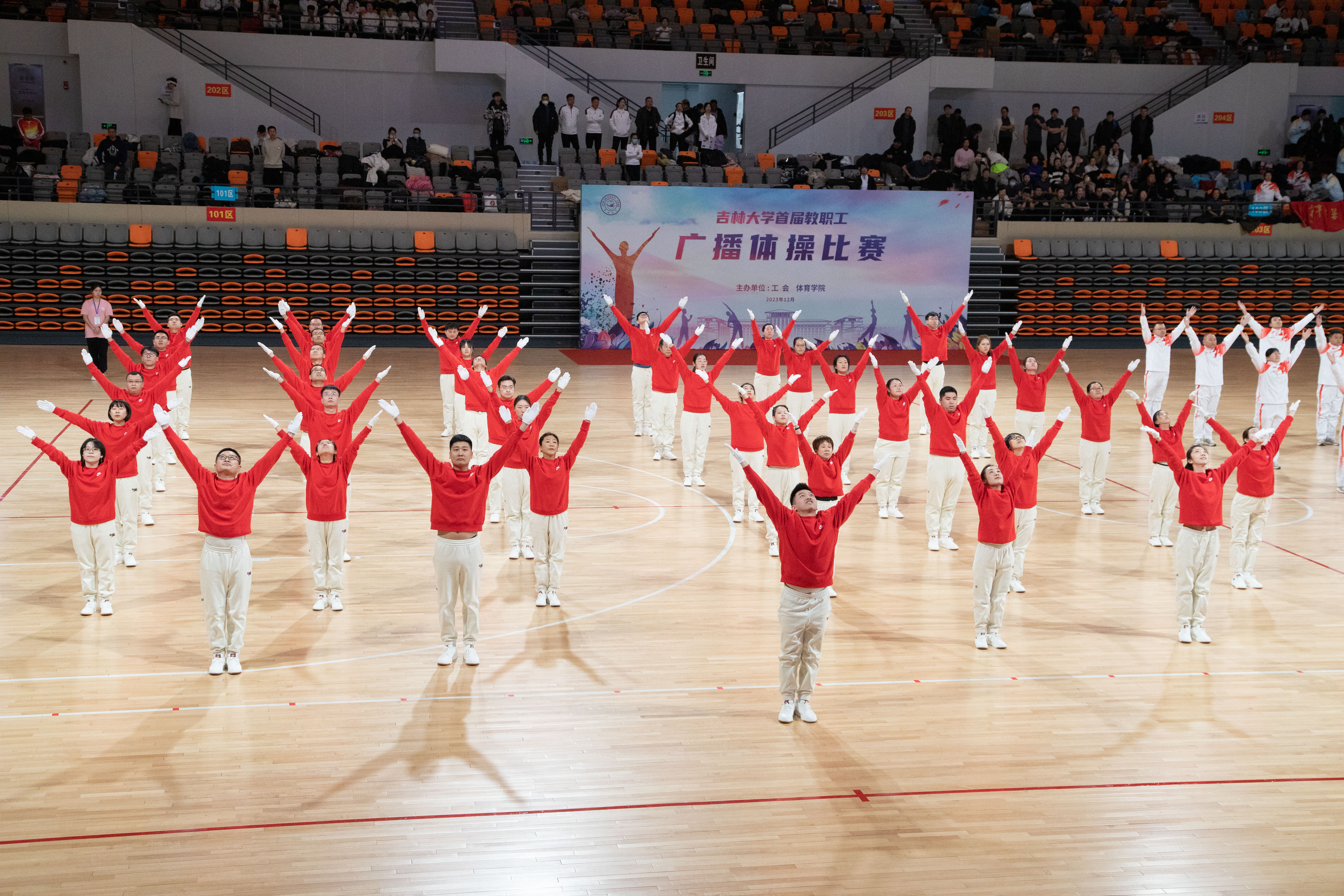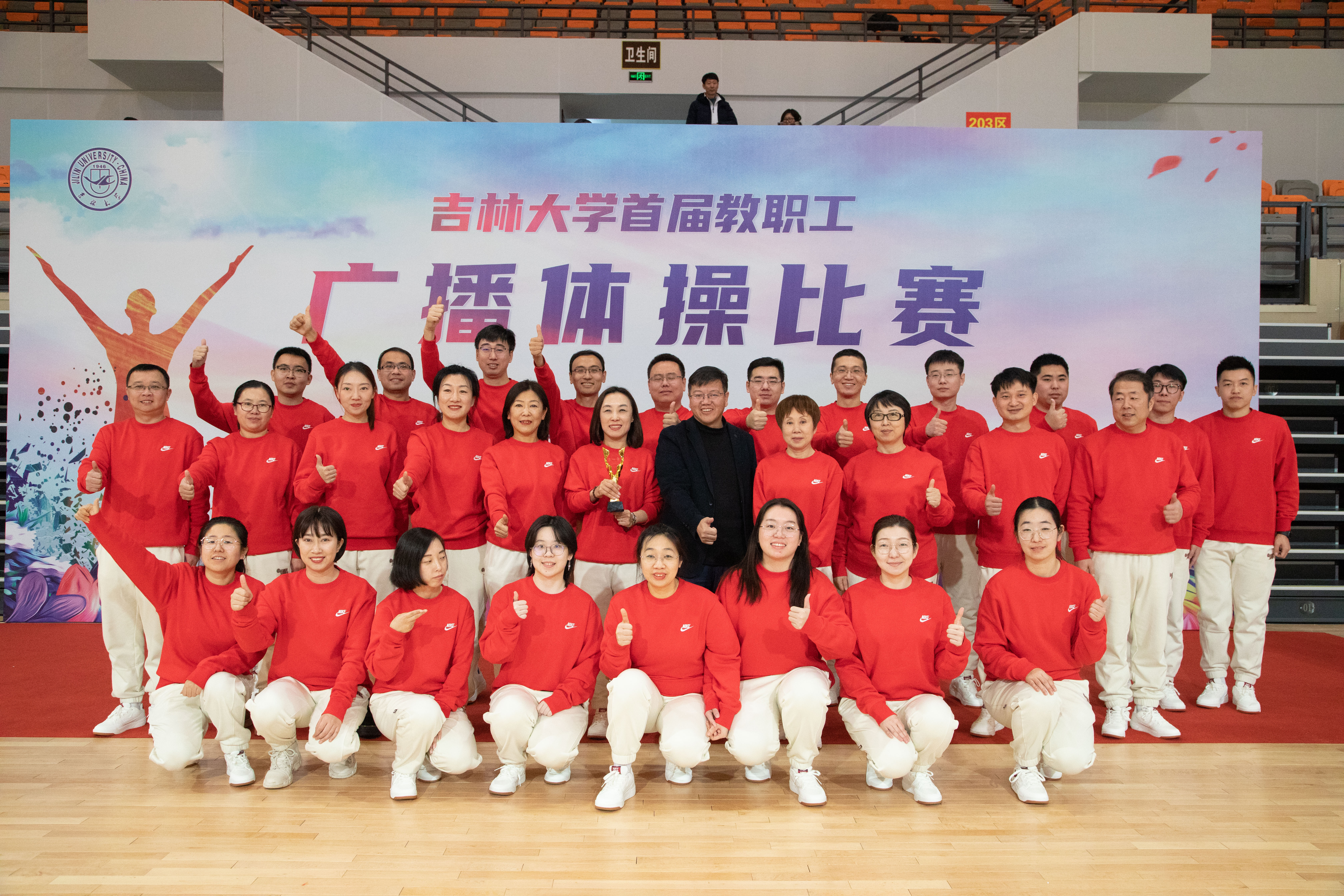 为认真贯彻落实全民健身战略,打造健康文明、昂扬向上的教职工文化,根据今年会jinnian官网工会《关于举办今年会jinnian官网首届教职工广播体操比赛的通知》要求,今年会jinnian官网代表队于12月16日在中心校区宋治平体育馆参加了今年会jinnian官网首届教职工广播体操比赛,并荣获一等奖和最佳领操员奖项。