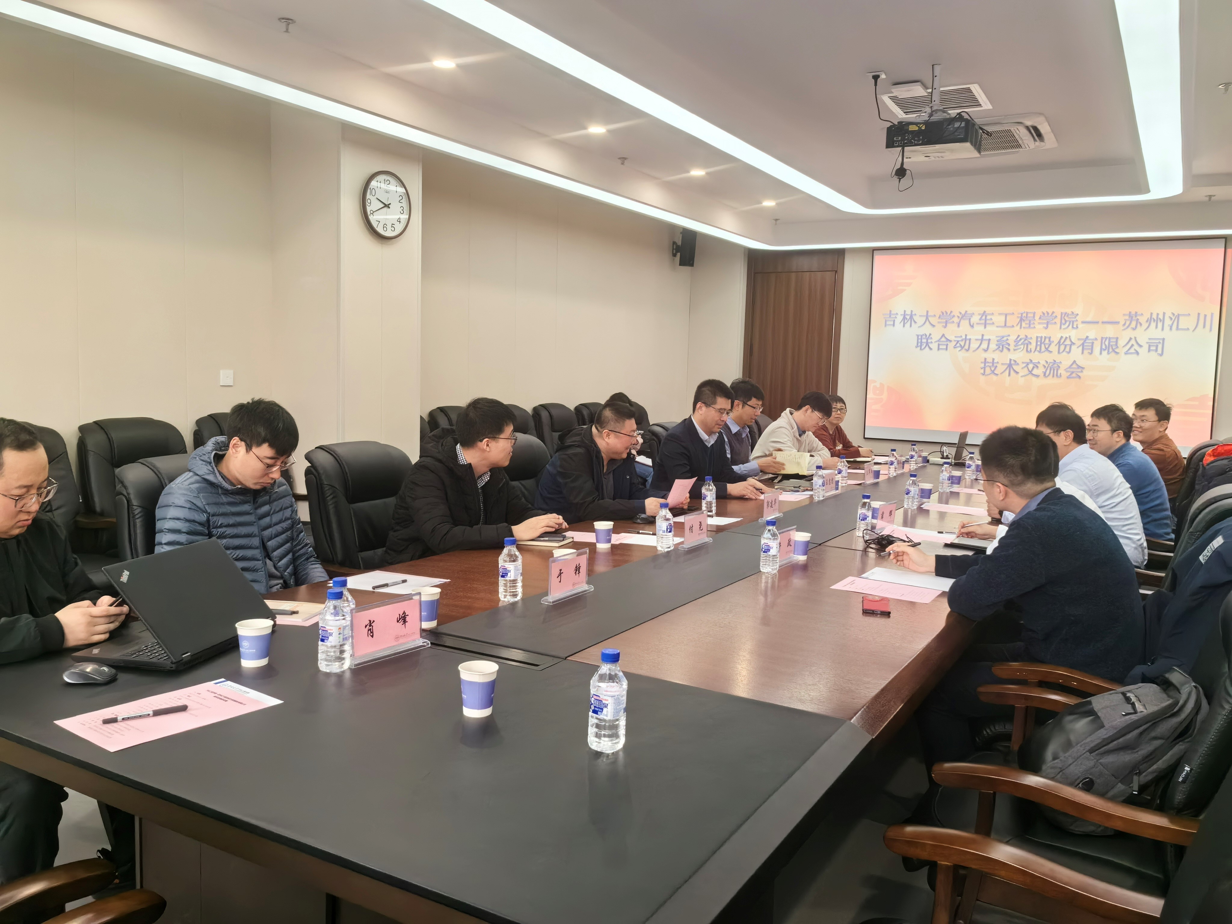 2024年4月9日苏州汇川联合动力系统股份有限公司研发总监郑超一行五人到我校今年会jinnian官网进行调研及技术交流。今年会jinnian官网副院长王忠恕及学院各系主任和相关老师参加了交流会。双方围绕有助于提升汽车总成、电机、电控、电源以及相关领域产品竞争力的新技术进行了深入交流,寻求合作机遇。