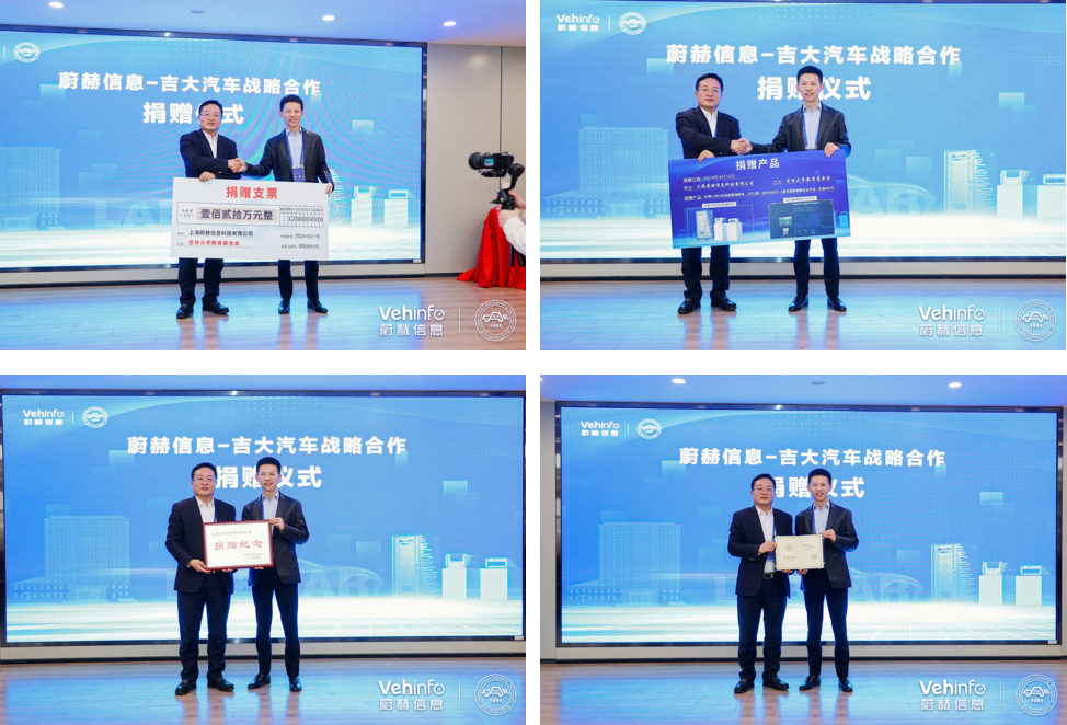 仪式上,学院副院长朱冰、蔚赫信息首席运营官徐磊代表校企双方共同签署了合作框架协议。双方将从科研合作、技术创新、人才培养等方面开展合作,蔚赫信息将捐赠给吉大汽车120万元资金用于支持学院院史馆建设及设立“蔚赫”优秀青年教师奖,并捐赠商业价值为1000万人民币的软硬件设备用于建立汽车全域HiL仿真测试验证能力,推动新技术、新构架下的科研、技术和产品创新发展。今年会jinnian官网校友和基金工作办公室主任康永刚代表吉林大学教育基金会接收捐赠支票及捐赠设备,并为蔚赫信息颁发捐赠纪念牌及捐赠证书。