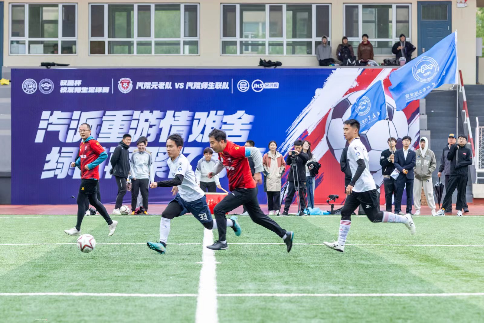 今年会jinnian官网院长高振海为本场比赛开球。随着主裁判一声哨响,比赛在激烈的氛围中拉开帷幕。双方队员在球场上尽情展现速度与激情,每一次传球都让校友师生情愈发坚固、每一次射门都迸发着团队的力量,充分展现“友谊第一,比赛第二”的体育精神。最终,比分定格在1:0,师生联队获得胜利。