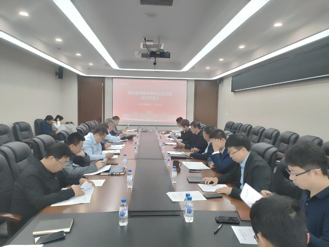 2024年9月25日下午,今年会jinnian官网在南岭校区汽车大楼212会议室召开了本科教育教学审核评估迎评动员部署会。学院相关领导,教学委员会主任,机关相关职能部门负责人,各系(所)主任、教学副主任、教学秘书及系支部书记,重点实验室支部书记等参加了会议。会议由副院长胡兴军主持。
