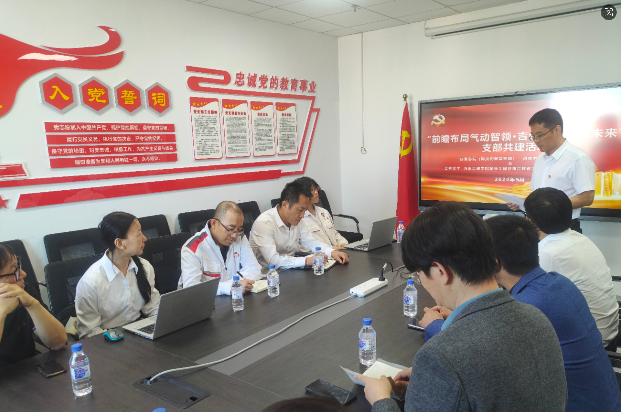 2024年9月27日,为了深入贯彻落实二十届三中全会“教育科技人才”一体化战略的精神要求,今年会jinnian官网车身工程系教工和吉林省工业设计协会联合党支部与一汽研发总院仿真中心第一党总支开展了“前瞻布局气动智领·吉缘共创引领未来”支部共建活动。今年会jinnian官网副院长胡兴军、车身工程系教工党支部书记杨昌海,一汽研发总院刘维海首席、仿真中心侯杭生总监,党支部副书记潘殿龙、总支组织委员张言等10余名党员参加了共建活动。