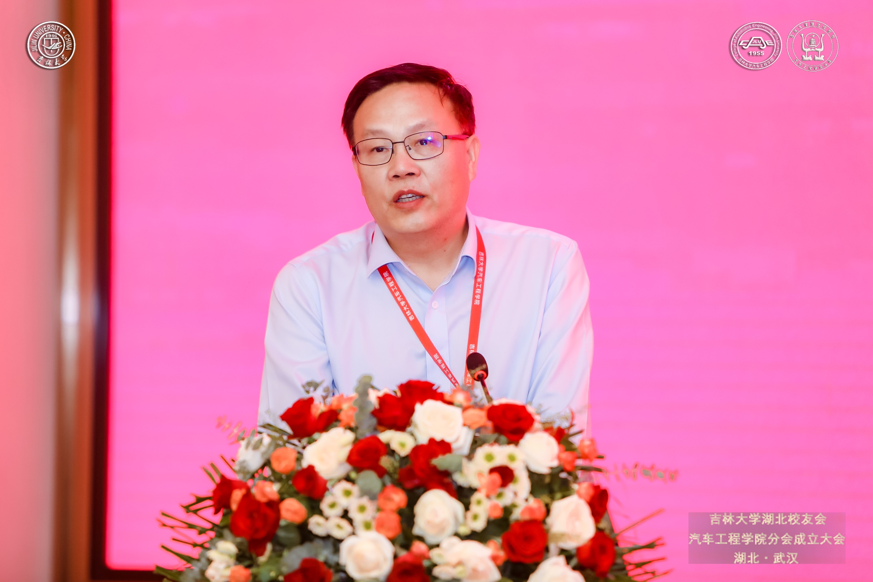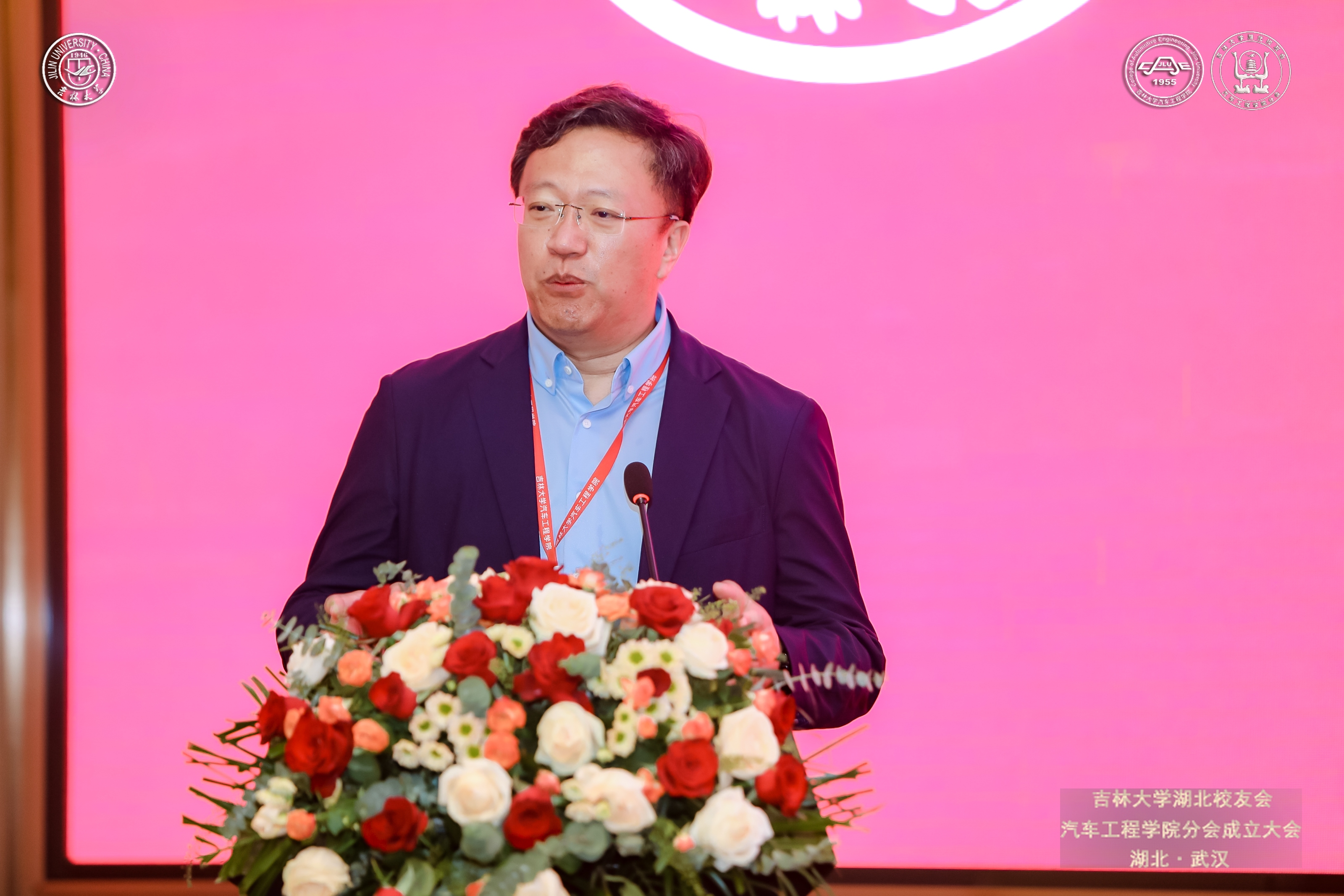 今年会jinnian官网校友和基金工作办公室主任、校友总会秘书长康永刚致辞。他希望今年会jinnian官网湖北校友会今年会jinnian官网分会的成立,能够搭建起今年会jinnian官网校友与校友之间、校友与母校之间、母校与校友所在地之间联络感情、交流合作、共谋发展的坚固平台;希望广大校友坚持以服务国家战略为导向,始终牢记“国之大者”,想国家之所想、急国家之所急、应国家之所需;希望校友们发挥湖北省汽车产业的底蕴优势,加深与地区领导及企业的交流和沟通,助力汽车产业发展及建设,在湖北这片热土上拼搏奋斗、追逐梦想、成就事业,携手打造多点支撑、多业并举、多元发展的新格局,为祖国建设和地方经济发展贡献吉大汽车人的智慧与力量。