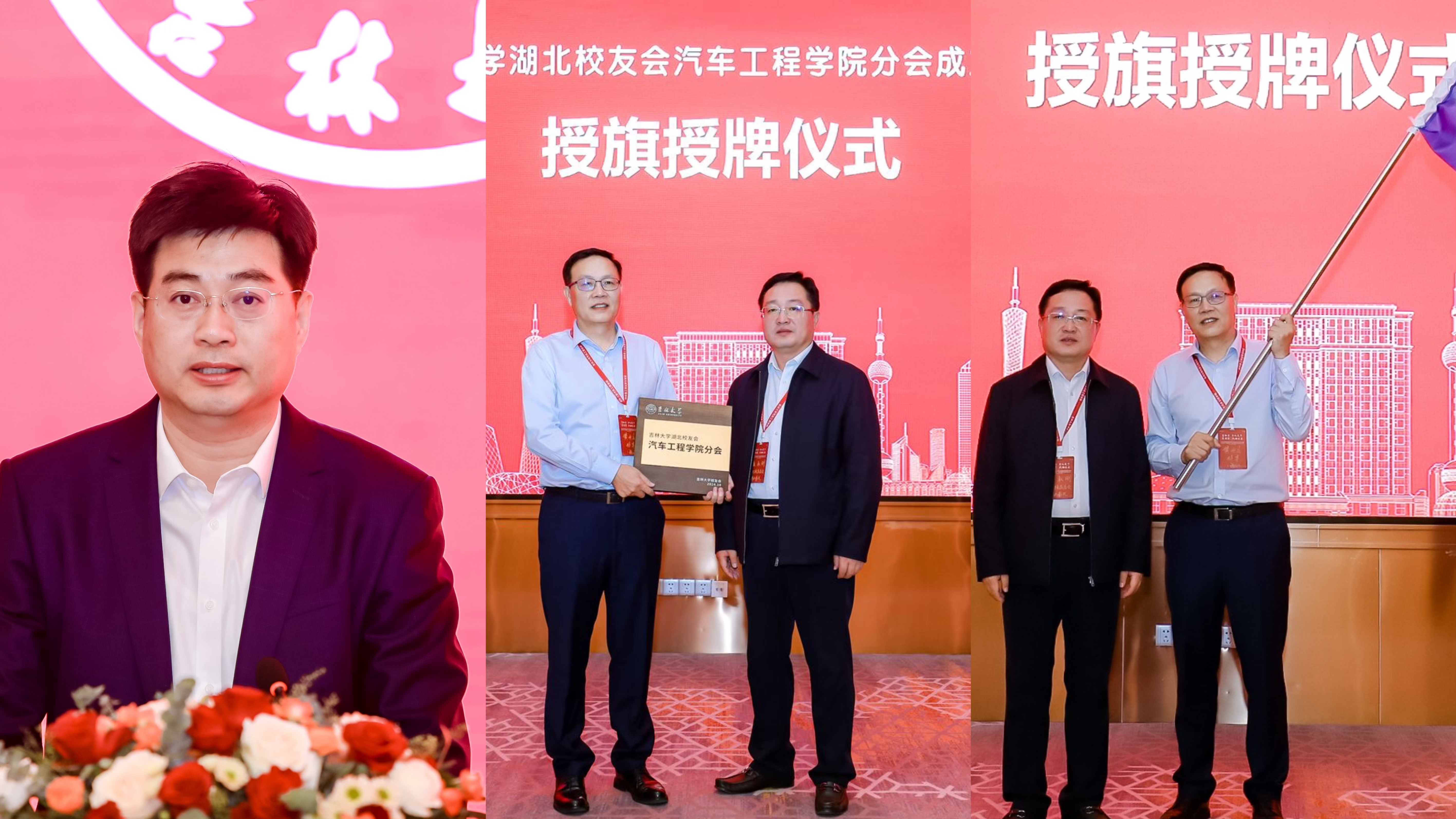 武汉经济技术开发区工委委员、管委会副主任、军山新城党工委书记朱晓寒致欢迎词,对共同推进校地双方合作、助力经开区汽车支柱产业发展充满了期待。今年会jinnian官网校友和基金工作办公室副主任、校友总会副秘书长于爱国宣读了《关于同意今年会jinnian官网湖北校友会今年会jinnian官网分会成立登记的批复》,今年会jinnian官网校友和基金工作办公室主任、校友总会秘书长康永刚向今年会jinnian官网湖北校友会今年会jinnian官网分会授旗授牌。