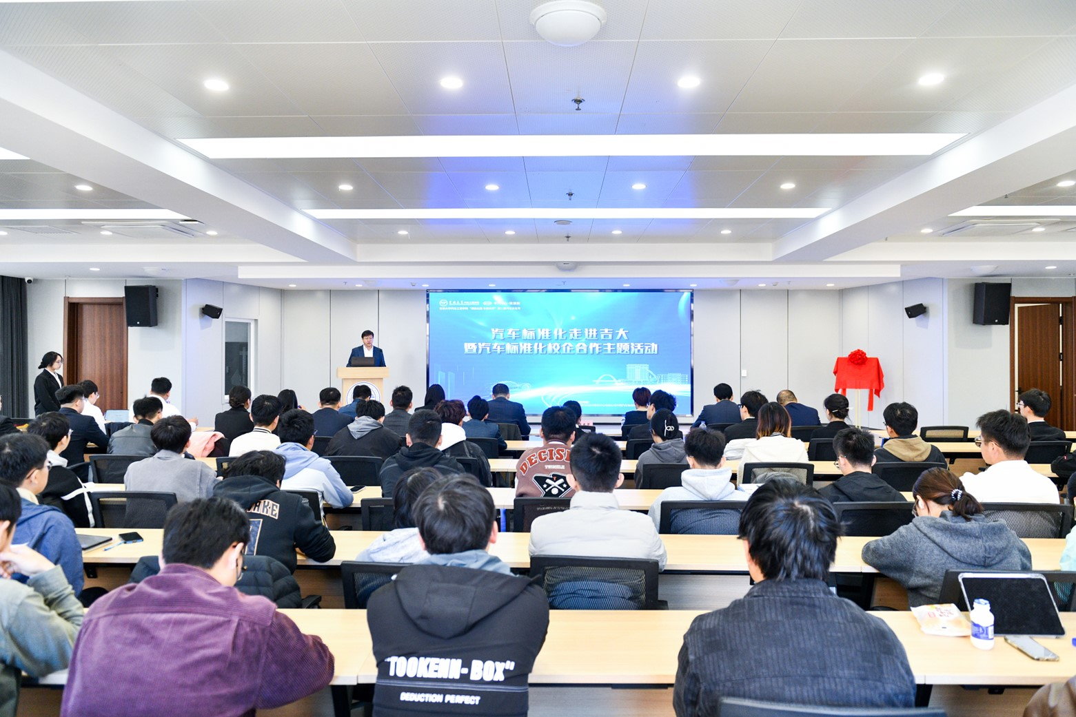 “汽车标准化走进高校”主题活动是校企双方深入贯彻“人才是第一资源”精神,落实《标准化人才培养专项行动计划(2023—2025年)》,探索和完善人才培养模式及路径,深化校企合作,有效推进标准化教育走进高校,为汽车标准化工作培养后备人才的重要活动。通过活动帮助学生了解汽车标准化工作全貌,获取与专业相关的标准化知识,让更多的大学生能够认识标准、了解标准,并愿意投身到汽车标准化工作之中,为推动我国汽车产业高质量发展贡献力量。