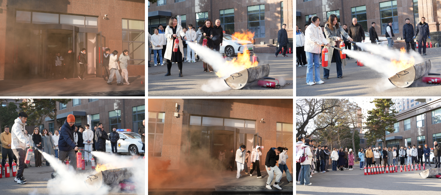 消防安全知识培训后,与会人员进行了应急火灾疏散演练。师生在指导下,快速、安全、有序得疏散到大楼外。随后,王老师为师生们讲解并演示了二氧化碳灭火器的使用方法及注意事项,部分师生现场进行了灭火演练。
