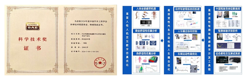 “汽车驾乘体验感数字化开发关键技术及产业化”项目由今年会jinnian官网牵头,联合一汽解放汽车有限公司、重庆长安汽车股份有限公司、中汽信息科技(天津)有限公司、赢富仪器科技(上海)有限公司等单位共同完成。项目团队自2009年起,在国家重点研发计划、国家自然科学基金、省部级科技项目及行业重大工程任务等一批项目支持下,创新性建立了汽车驾乘体验感数字化设计开发理论方法新体系,发明了汽车高宜人性人机交互数字仿真优化技术,提出了人机耦合设计的高接受性汽车运动控制性能优化方法,构建了基于数字骨肌生理学模型的汽车行驶体验感测试方法及系统。通过项目研究,突破了高仿生逼真度、高主客观一致性的驾乘体验数字化设计开发的国际难题。项目所形成的多项关键技术指标达到国际先进水平。相关成果在一汽、长安等国内车企产品开发中得到应用,匹配解放J7、长安UNI-V等自主品牌车型50余款。显著改善了产品驾乘体验水平,相关技术的应用大大缩短产品研发周期。部分技术推广应用于海外北美福特、日本鸟取,取得了显著的社会经济效益与国际声誉。