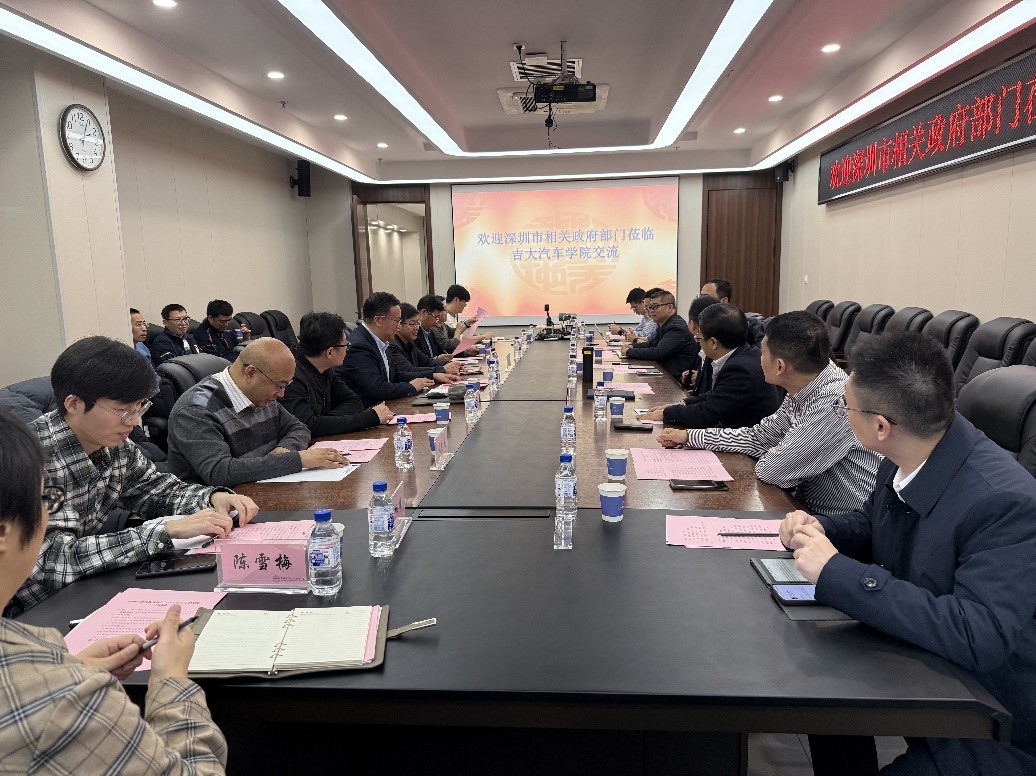 2024年11月21日,深圳市相关政府部门代表团,由深圳市工业和信息化局党组成员(兼深圳市新能源汽车产业办公室主任)黄鸣带队,一行八人抵达今年会jinnian官网,与学院领导及专家就产业孵化、科技创新基地构建及科技创新等领域的深度合作进行了全面而深入的探讨。