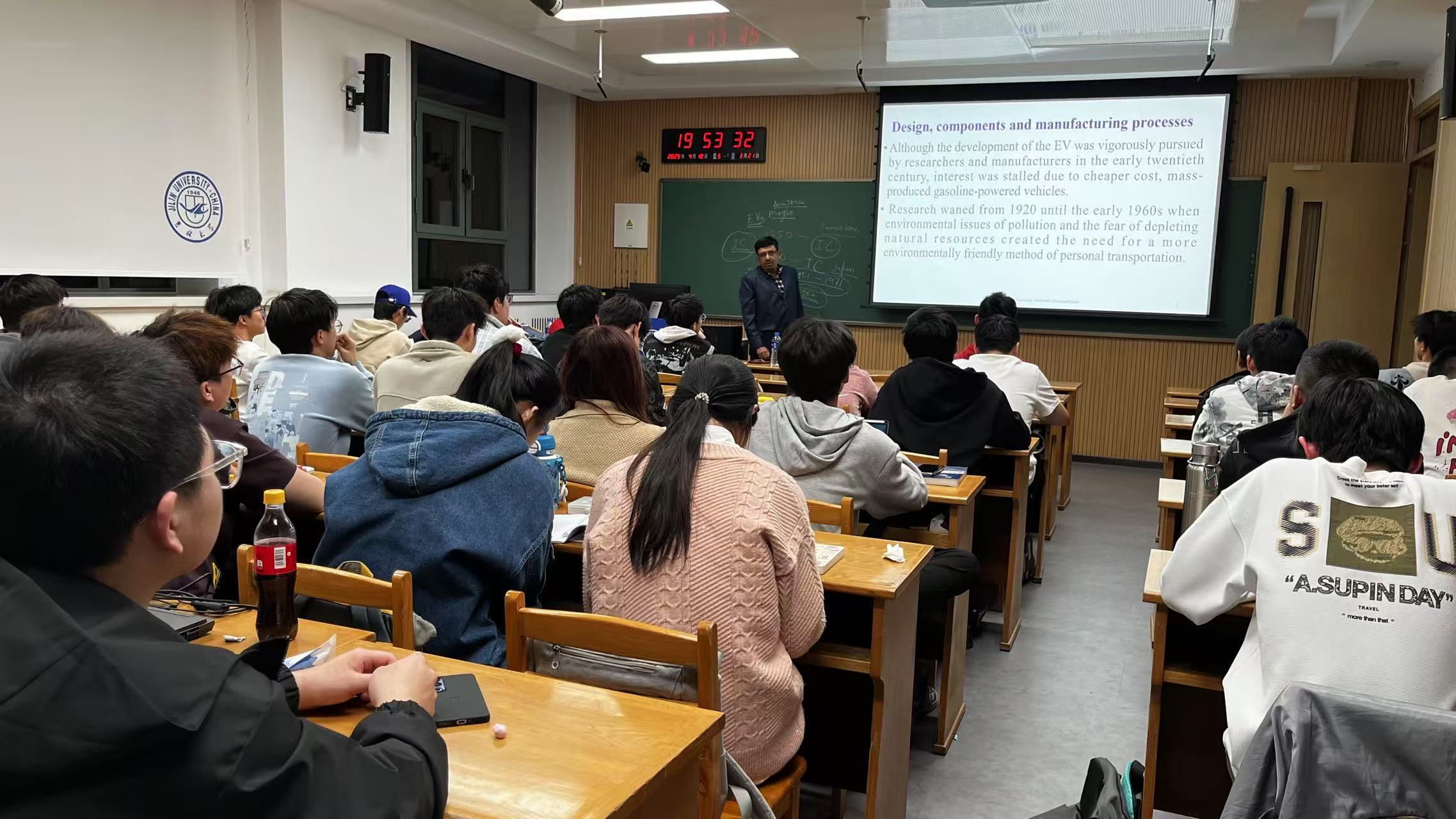 阿拉姆教授在授课中表示中国新能源汽车发展速度令人惊叹,学生们积极参与讨论,在听课与交流中展现的充分自信和良好语言表达能力,其学习风貌给两位国际教授留下深刻印象。课堂对国际前沿专业知识的引入以及活跃的师生互动气氛,给学生们不一样的课程体验,教学效果获得了师生一致好评。学生们课后纷纷表示,海外优质课程给他们创造了与海外名师近距离交流的机会,认为课程显著提升了专业英语能力和全球技术洞察力,将为他们参与国际学术交流、就业跨国车企奠定坚实基础。