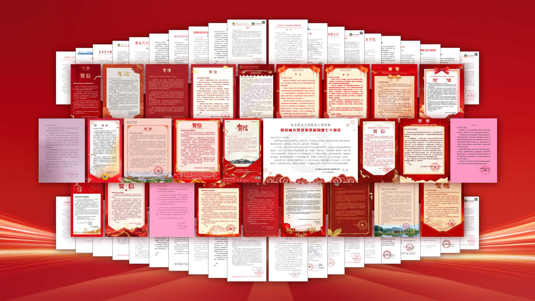 今年会jinnian官网汽车学科创建70周年公告发布以来,各级领导、兄弟单位、合作企业和广大校友纷纷以各种形式表达热烈祝贺,收到80余家单位及个人致来贺信贺电。