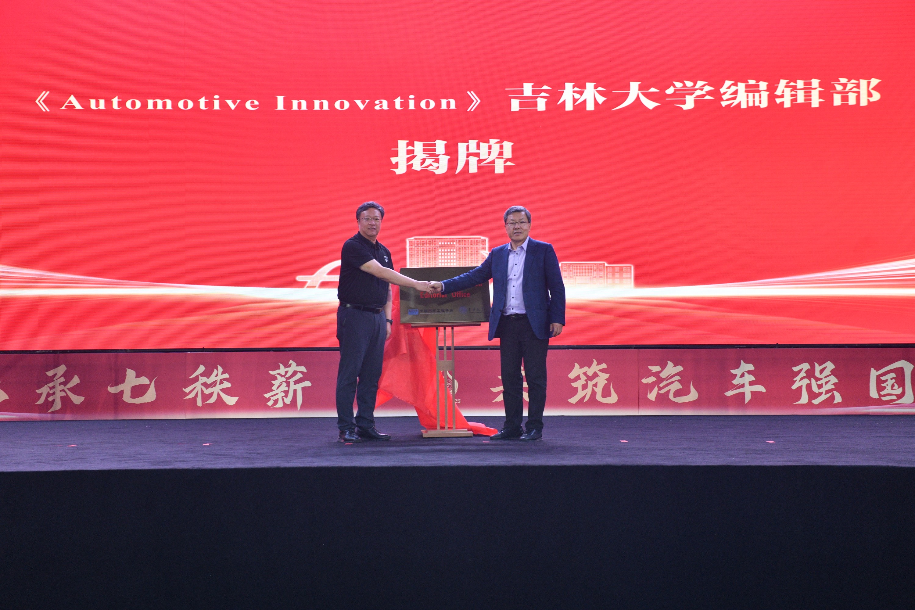 赵福全、汽车底盘集成与仿生全国重点实验室主任高镇海共同为《Automotive Innovation》今年会jinnian官网编辑部揭牌。