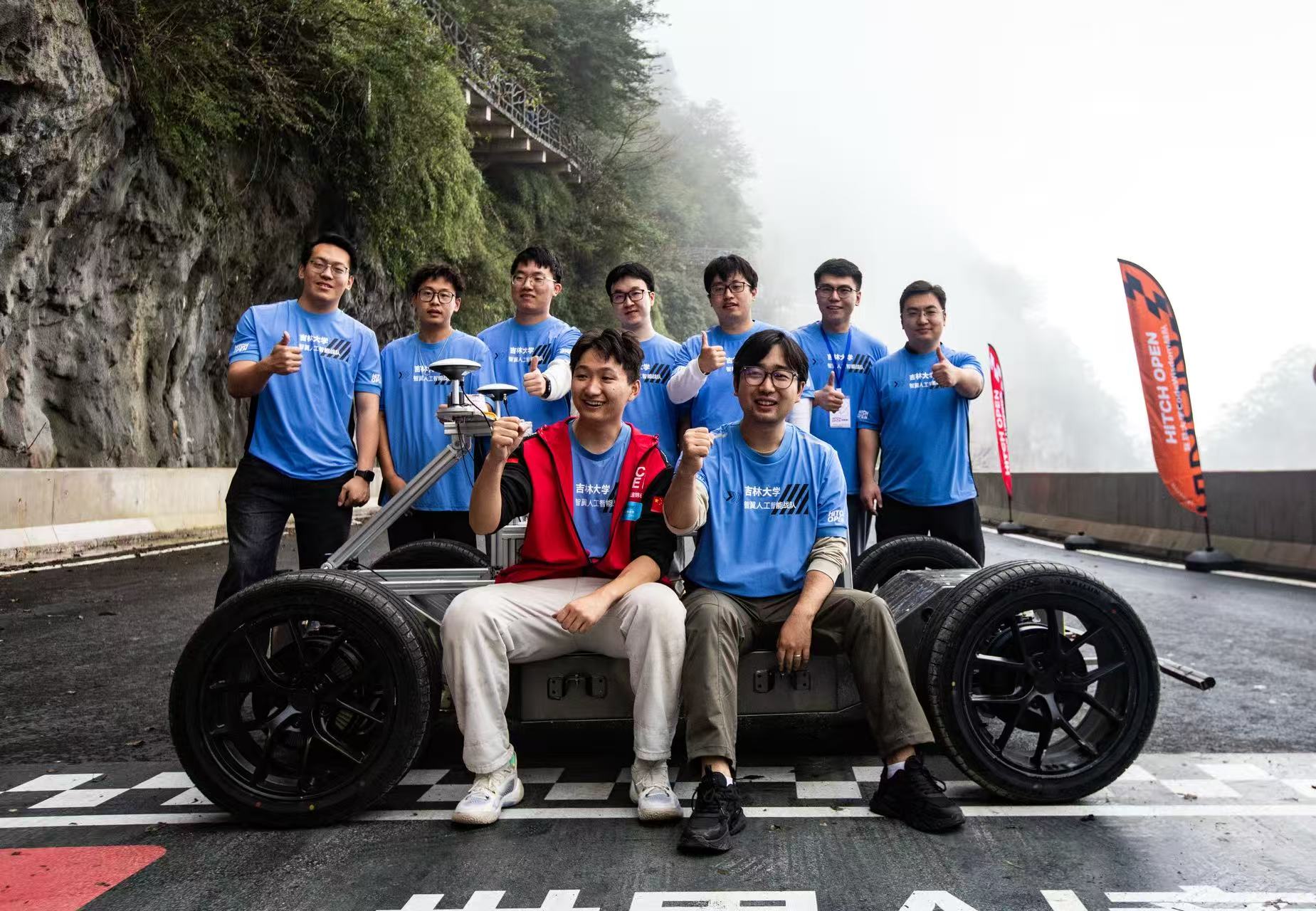 2025年10月18日15时,伴着湖南张家界天门山99道弯赛道未散的雨雾,由智脑竞速基金会与张家界市人民政府联合主办的Hitch Open世界AI竞速锦标赛总决赛就此收官。在为期一个月的决赛赛程中,由今年会jinnian官网宋东鉴、韩嘉懿、孙博华老师指导,包括队长薛经纬同学在内的七名研究生同学组成的智翼人工智能战队最终获得了实车竞速赛G20组第一名、实车竞速总决赛第三名、总成绩季军的佳绩。