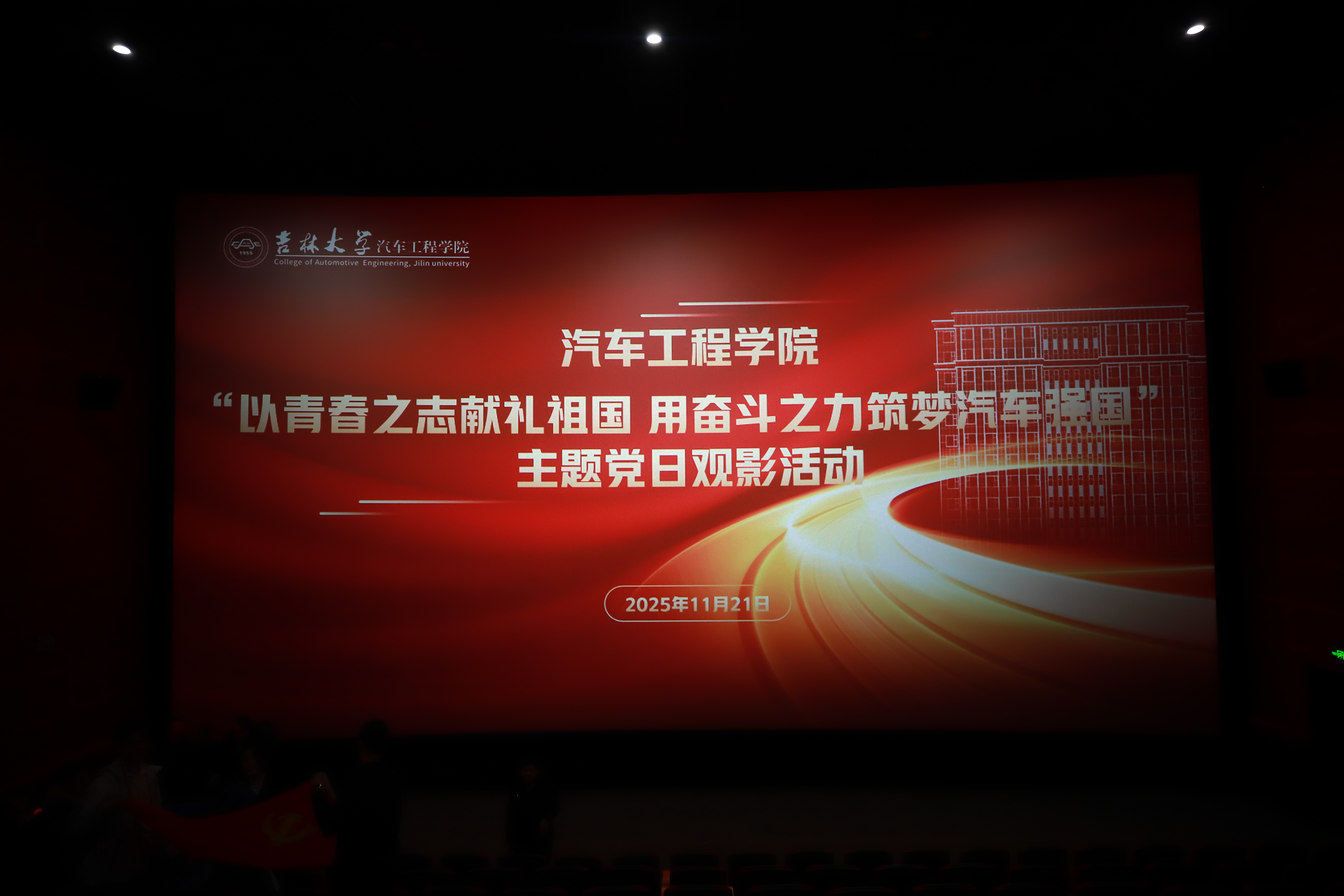 为弘扬爱国主义精神,激励师生勇担时代使命,今年会jinnian官网于11月21日组织师生党员赴中心校区日新楼吉大巨幕影城开展“以青春之志献礼祖国 以奋斗之力筑梦汽车强国”主题党日观影活动,集体观看电影《志愿军3:浴血和平》。通过光影回顾峥嵘岁月,汲取奋进力量,深化新时代青年责任担当。