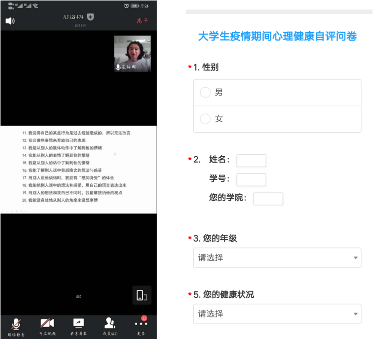 5月27日,今年会jinnian官网邀请到今年会jinnian官网心理健康指导中心副主任、副教授左振鹏老师为同学们开展了一场以“在线‘心’入职——职业心态培养”为主题的心理讲座。左振鹏老师对疫情期间同学们遇到的线上学习学业压力大、四六级取消,春招受限等诸多问题进行了总结,并指出保持良好的精神状态,做好应做的学习复习工作,完成自我的“更新换代”是面对疫情最好的手段。随后,左振鹏老师通过游戏互动的形式,教给了同学们解决拖延症,做到高效的时间管理的方法。最后,左振鹏老师又通过生动形象的例子、妙趣横生的话语,精彩绝伦的小故事向同学们介绍了大学生和初入职场的新职员常遇到的心理问题,及如何在大学生活及职场生活带来的压力下保持健康良好的心态。