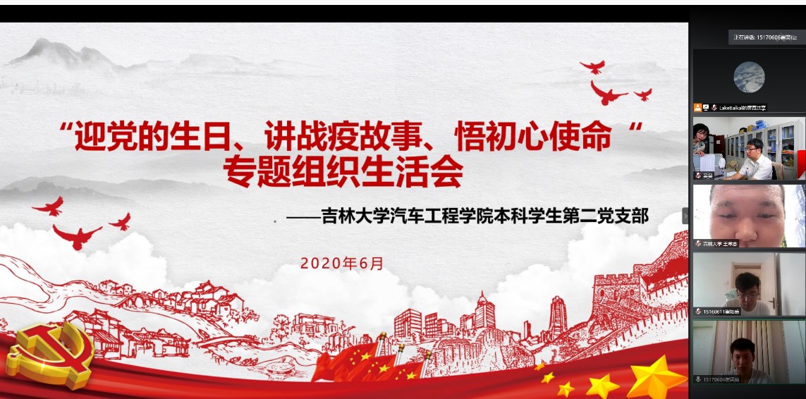 2020年6月30日上午10点,今年会jinnian官网本科学生第二党支部通过腾讯会议召开了一场云端支部视频会议。会议以“迎党的生日、讲战疫故事、悟初心使命”为主题,党支部书记吴昊同志给大家讲授了一堂生动而又精彩的微党课,党支部26名同志积极参与。