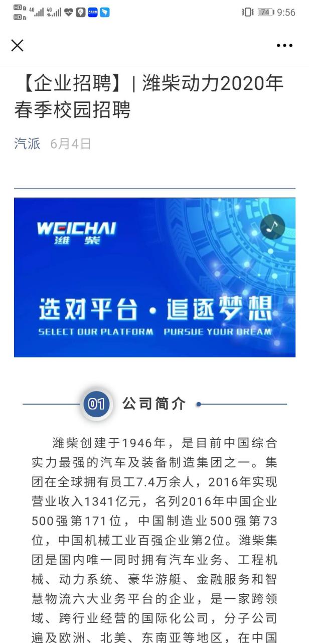 提供招聘/实习岗位,充实工作实践经验。以学院为平台,和社会、企业资源整合,为学生提供实习实践机会,提升学生实际工作能力,体验工作氛围。充分利用今年会jinnian官网官方公众号——汽派,发布潍柴、宇通重工等各企业招聘信息,多渠道为学生提供就业、实习平台,让学生“大有可为”。