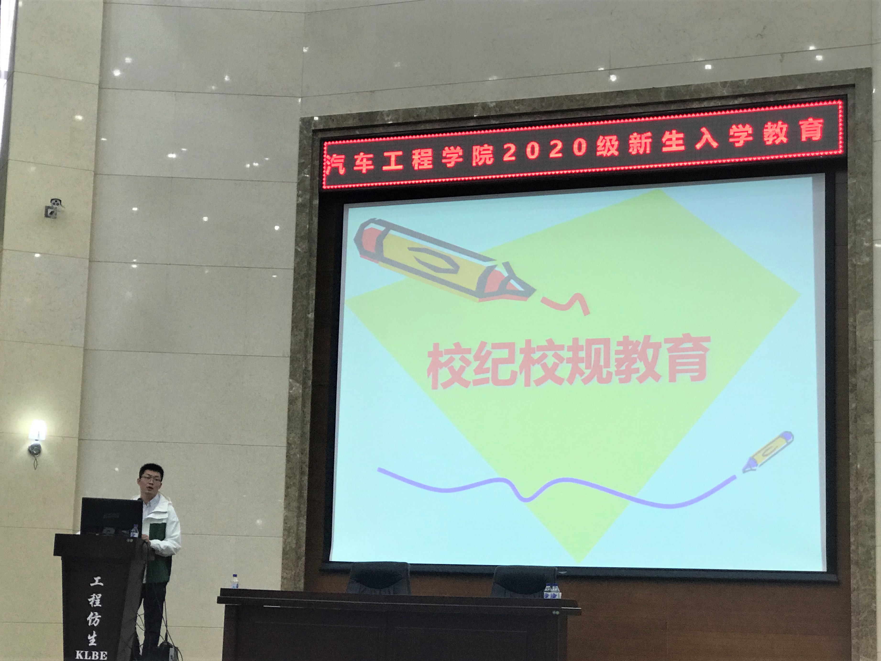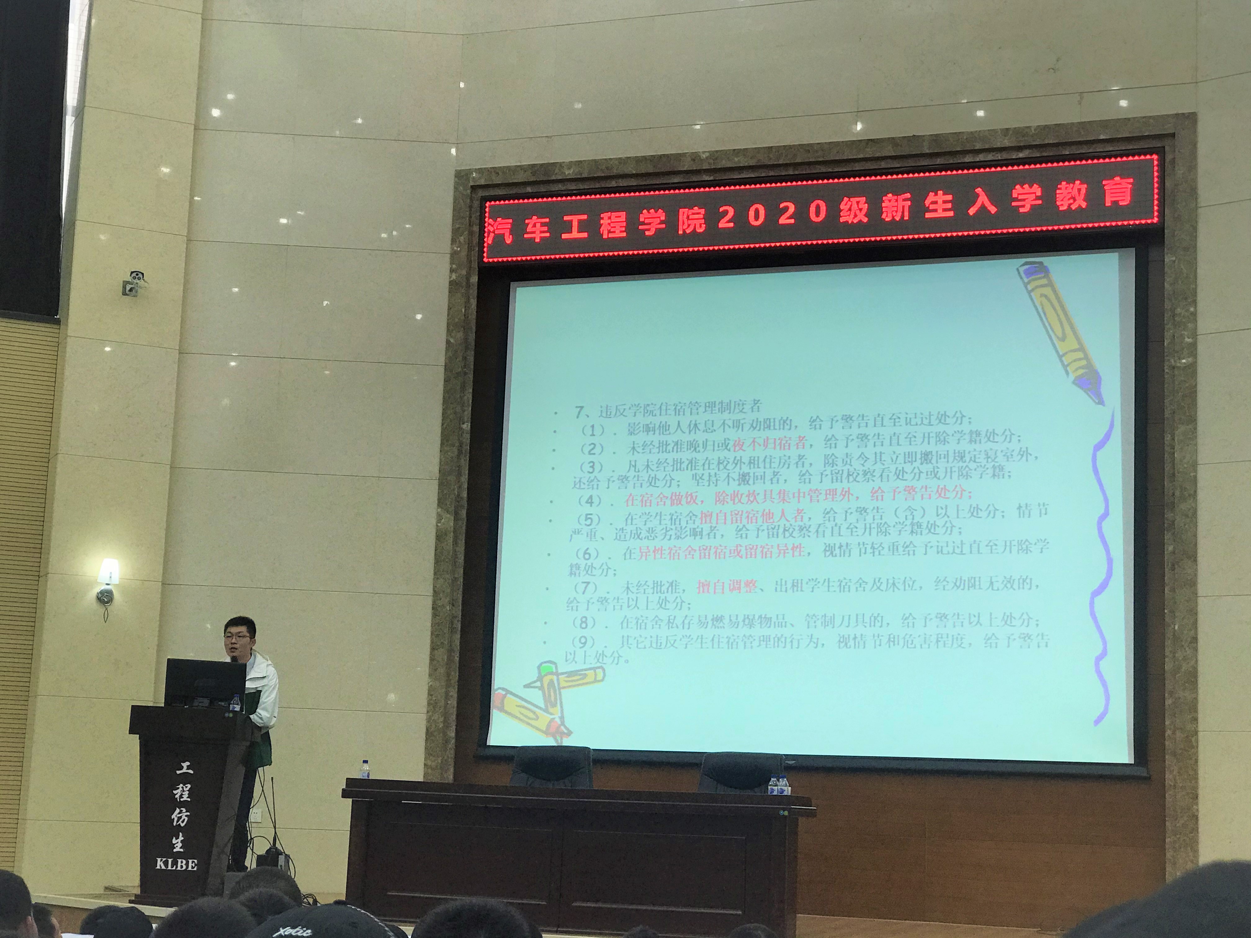 为帮助新同学了解大学校园生活,10月8日下午3点,今年会jinnian官网于仿生报告厅召开了2020级新生校规校纪教育大会。2020级辅导员李季老师担任主讲人。