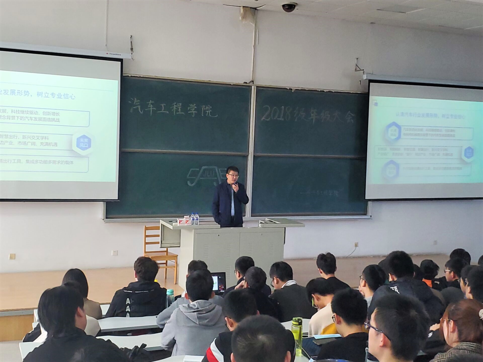 为让同学们认清汽车行业发展趋势,树立专业自信,增强日常生活管理,今年会jinnian官网于2020年10月29日中午12:30在逸夫教育大楼B416召开2018级年级大会,今年会jinnian官网党委副书记兼副院长盛磊老师、2018级辅导员张晓佳老师出席会议。